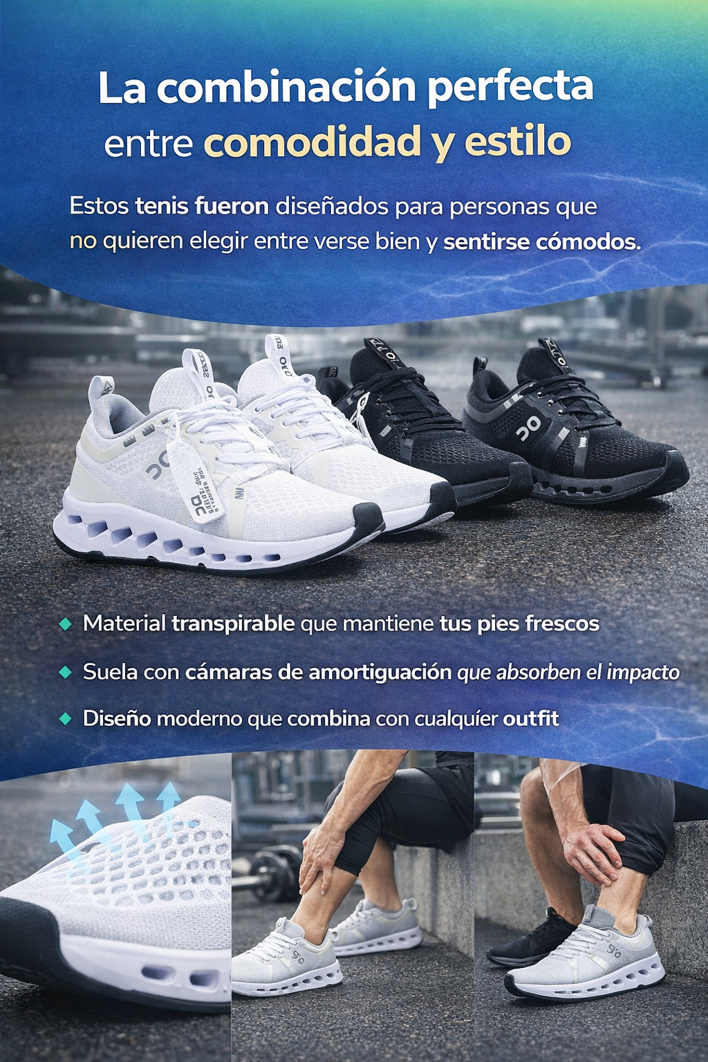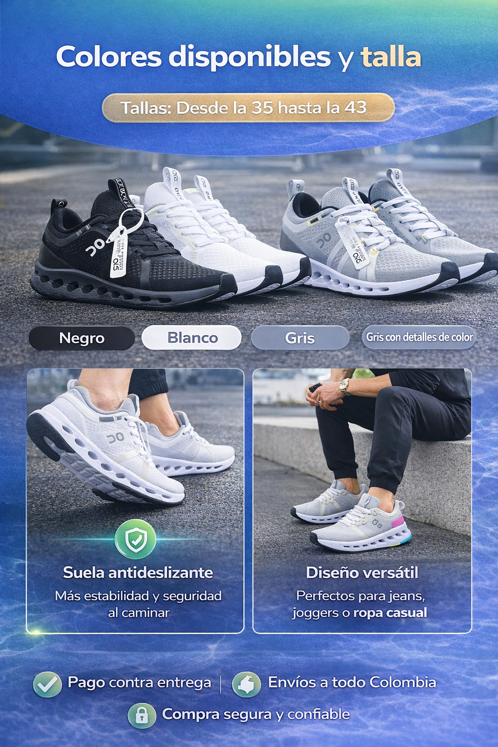 Diseñados para ofrecer máxima comodidad, ligereza y estilo, estos tenis son ideales para uso diario, caminatas largas, gimnasio o trabajo activo.